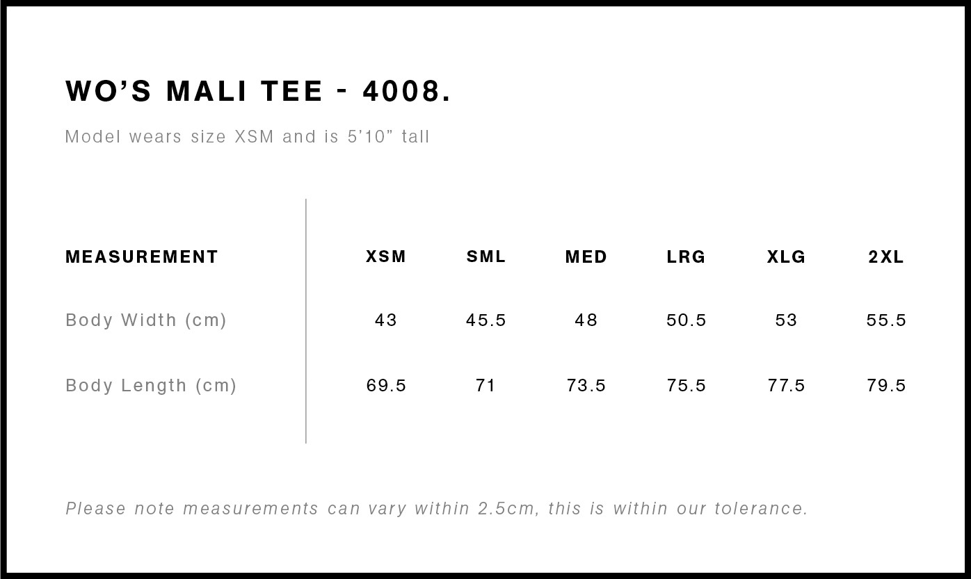 One of AS Colour's core women's styles, it's a great alternative to the regular crew neck AS Colour Maple Tee. The curved tails on the Mali tee give the wearer a bit more length than a standard crew tee.